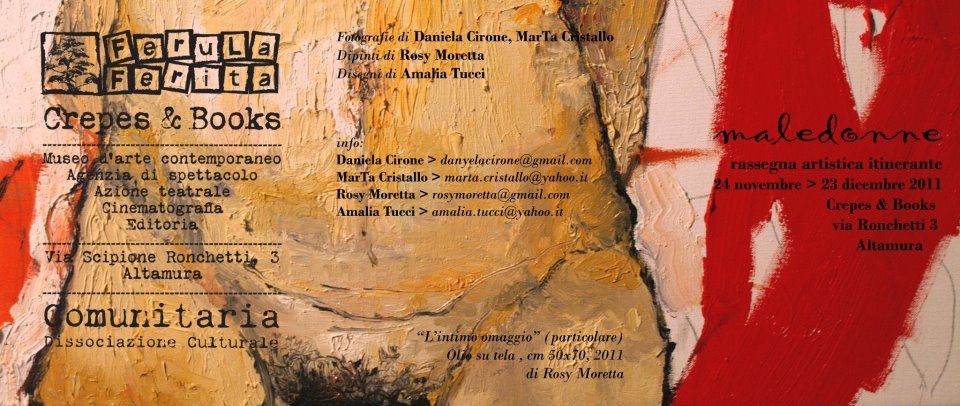 L'esposizione sarà aperta tutti i giorni dalle 19.30 per un mese, presso la 'crepes and books’ in via ronchetti 3 ad atamura.